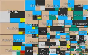 The following figures offer detail into the sources of generation used in each state.[51] Most often, natural gas is the largest source in a given state, with 22 states using it more than any other. Among renewable sources, 18 states use wind power more than any other.