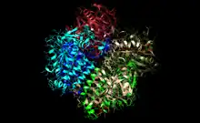 ![]() Enoyl-CoA hydratase hexamer from a rat with active site in orange and substrate in red. | |||||||