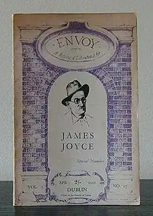 During its brief existence, it published the work of a broad range of writers, Irish and others. The first to publish J. P. Donleavy, Brendan Behan's first short stories and his first poem, and an extract from Samuel Beckett's Watt, Envoy was begun by John Ryan, a Dublin artist, who was editor and prime mover. Among the distinguished associate editors were Valentin Iremonger, Irish diplomat and poet who served as poetry editor, James Hillman (who began his career as associate editor for Envoy,[1] Michael Huron, and Owen Quinn. Envoy included Patrick Kavanagh's infamous monthly "Diary". Brian O'Nolan was also a contributor (once writing a "counter-diary" to Kavanagh's Diary[2]) and was "honorary editor"[3] for the special number commemorating James Joyce.
