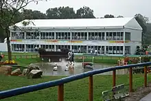 There were two main equestrian venues: Hong Kong Sports Institute (adjacent to Sha Tin Racecourse) and the Beas River Country Club. The Sports Institute held the main competition arena, which included an 80 × 100 meter stadium will all-weather footing and seating for 18,000. The Beas River Country Club was the site of the cross-country phase of eventing, which was held on the golf course.