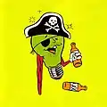 An art booklet was also included, featuring "Bulby" and several other characters which unfolded to display a pin-up advertisement for the album, following the 1950s advertising satire as the rest of the album art followed. The lack of liner notes for the album was remedied when the official website allowed users to view an e-booklet, containing more detailed liner notes, lyrics, and previously unseen artwork.[21] The green light bulb with the pirate hat, eye patch and peg leg is known as "Stumpy".