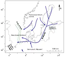 The Neogene uplift of the South Swedish Dome deflected Eridanos river from its original path across south-central Sweden into a course south of Sweden in the Pliocene.[4]