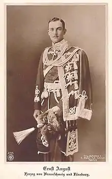 Ernest Augustus (Ernest Augustus Christian George, German: Ernst August Christian Georg); 17 November 1887 – 30 January 1953) was Duke of Brunswick from 2 November 1913 to 8 November 1918. He was a grandson of George V of Hanover, thus a Prince of Hanover and a Prince of the United Kingdom. He was also a maternal grandson of Christian IX of Denmark and the son-in-law of German Emperor Wilhelm II. The Prussians had deposed King George from the Hanoverian throne in 1866, but his marriage ended the decades-long feud between the Prussians and the Hanoverians.