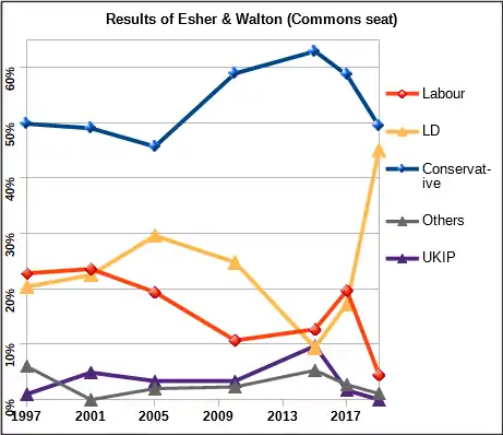 - ↑ "Esher & Walton Parliamentary constituency". BBC News. Retrieved 26 November 2019.