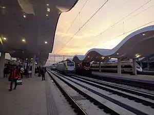 Eskişehir railway station (Turkish: Eskişehir garı) is the main railway station in Eskişehir, Turkey. The station is part of a major railway facility, which is one of the largest in the country. Prior to the cancellation of all non-high-speed trains between Ankara and Istanbul, Eskişehir station was one of the busiest stations in Turkey.[4] Eskişehir is served by high-speed trains on the Ankara–Istanbul line. Due to its geographical location, the city is an important railway junction, where two main lines meet. The largest railway factory in Turkey, owned by TÜLOMSAŞ, is located next to the station as well as serving as the headquarters for the company.