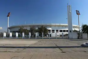 Estadio Nacional Julio Martínez Prádanos (originally known as Estadio Nacional) is the national stadium of Chile, and is located in the Ñuñoa district of Santiago. It is the largest stadium in Chile with an official capacity of 48,665. It is part of a 62 hectare sporting complex which also features tennis courts, an aquatics center, a modern gymnasium, a velodrome, a BMX circuit, and an assistant ground/warmup athletics track.