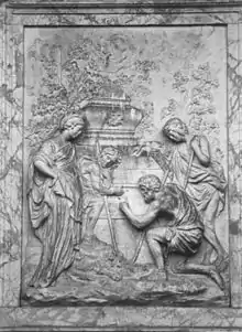 In 1832 another relief was sculpted as part of the monument marking Poussin's tomb in Rome, on which it appears beneath a bust of the artist.[8] In the words of art historian Richard Verdi, it appears as if the shepherds are contemplating "their own author's death."[9]