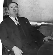 During the legal purge in Norway after World War II he managed to get his case delayed until 1950,[2] after first having been arrested between 13 May 1945 and 1946.[3] He died in 1963, and left behind a sizeable collection of weapons.[1] Parts of the collection was sold in 1993 at Christie's.[4] Money was channeled to a foundation Arkitekt Eugen Nielsens Stiftelse, which among others supported Arnfinn Moland with 50,000 kr to write the strongly Nazi-critical book Over grensen? Hjemmefrontens likvidasjoner under okkupasjonen av Norge 1940–1945.[3][5]