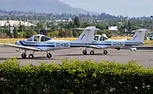 Two Piper PA-38 Tomahawks sitting at one of many parking spots at Tobalaba Airport.
