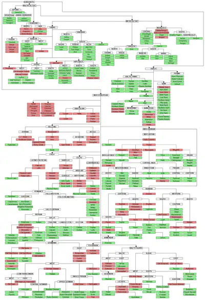 - ↑ Jäger, Gerhard (2015). "Statistical support for linguistic macrofamilies". Proceedings of the National Academy of Sciences. 112 (41): 12752–12757. Bibcode:2015PNAS..11212752J. doi:10.1073/pnas.1500331112. PMC 4611657. PMID 26403857.