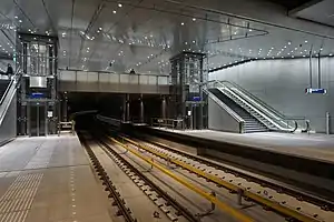 Europaplein metro station (Dutch: Station Europaplein) is a station on the Route 52 (North–South Line) of the Amsterdam Metro in Amsterdam, Netherlands. It was opened on 22 July 2018. Europaplein is an underground station situated in the Zuidas neighbourhood of Amsterdam-Zuid (Amsterdam South). The station is expected to handle around 20,000 passengers and arrivals per day.[1]