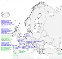 A map of all the locations of the European Grand Prix and other Grands Prix designated as the European Grand Prix