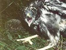 Wild pigs, dogs, cats are predators of the hedgehog, and the flightless, endemic weka and pūkeko will prey on nestlings.[2] The Australasian harrier hawk scavenges road killed hedgehogs (along with anything else killed on the roads), but it is unknown whether they actively prey on them.