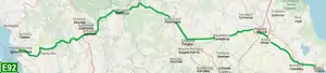 E 92 routes through the following local capitals (direction west-east): Igoumenitsa, Ioannina, Trikala, Larisa, Volos.