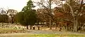 Evergreen Cemetery is a historic cemetery in the Brighton neighborhood of Boston, Massachusetts. It was established in 1850 by the town of Brighton (which was annexed to Boston in 1874), and was laid out in the then-fashionable rural cemetery style inspired by Mount Auburn Cemetery in Cambridge. Its entrance gate was built in 1892, and its Jacobethan office building was added in 1903. Boston architect James Mulcahy designed the office building. The older portions of the cemetery are characterized by winding lanes (now paved, originally gravel), with outcrops of Roxbury puddingstone.[2]