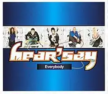 "Everybody" is a song by British pop group Hear'Say, written by Martin Harrington, Ash Howes, Richard Stannard, Julian Gallagher, and Andy Caine. Produced by Harrington and Howes, the track was recorded for the group's second studio album of the same name (2001), released nine months after their debut album, Popstars.[1] "Everybody" was issued as the album's lead single on 26 November 2001 and was the final single released by the band before member Kym Marsh quit. Upon its release, the song peaked at number four on the UK Singles Chart. The song's music video is set inside a space capsule and shows the five band members dancing on a stage.[2]