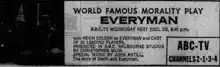 Everyman is a 1964 Australian television play. It screened on the ABC and was directed by Christopher Muir, who filmed the whole script.[5]