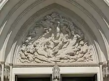 For the central trumeau, Hart sculpted an image of Adam, and for the tympana on either side, day and night.[30] As a complete sculptural ensemble, the Creation Sculptures constitute "the most monumental commission for religious sculpture in the United States in the twentieth century."[2]