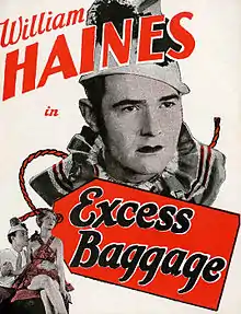 Excess Baggage is a lost[1][2] 1928 American synchronized sound comedy film directed by James Cruze and distributed by MGM. While the film has no audible dialog, it was released with a synchronized musical score with sound effects using both the sound-on-disc and sound-on-film process. The film was based on the 1927 play of the same name by John McGowan.[3] The film starred William Haines, Josephine Dunn and Kathleen Clifford.[4][5][6]