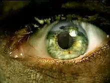 The video was shot as a "first-person narrative about the horrors leading up to the final moments of a soldier at war", and was described as "a single, long and tight close-up of the soldier's eye with images clearly reflected within his pupil and iris and perfectly choreographed with the rhythm of the music. Reflected are disconcerting images of para trooping into enemy territory, gunfire, helicopters and tanks, explosions, poignant flashbacks of his wife and child and home, and the images of his death."[12] Two endings were shot; one in which the soldier is killed as the result of sustained combat wounds, and another in which the soldier commits suicide by hanging - the latter one was used.[12] Jeff Hanneman confirmed that the band "loved" the eye concept, and personally felt that the video was "pretty amazing" when he first viewed it.[9] King admitted the film is "pretty cool — I thought it was neat idea — very different, especially for us, because we usually do performance based videos."[10] The video was exclusively posted on mp3.com late in October 2006.[12] In 2007, the video earned a Metal Hammer Golden Gods Awards nomination for Best Video, but eventually lost to Avenged Sevenfold's "Seize The Day."[13]