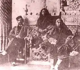 Ezzat ed-Dowleh was born in Kahnamu near Tabriz in north west of Iran. Ezzat ed-Dowleh was married four times. The first time when she married Mirza Taghi Khan Farahani in 1849.[3][4] The marriage ended after Amir Kabir was murdered on 10 January 1852.[5] The second time she married Mirza Kazem Nezam-ol-Molk Son of Mirza Aqa Khan Nuri.[6] The marriage lasted seven years, until Ezzat ed-Dowleh divorced her husband[1] and was married for the third time with her cousin Anoushirvan Khan Qajar.[1] After Anoushirvan Khan Qajar had died in 1868, Ezzat ed-Dowleh was married for the fourth times with Mirza Yahya Khan Moshir od-Dowleh in 1868.[7] Ezzat ed-Dowleh died on 27 June 1905 and was buried in Isfahan.