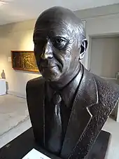 De Klerk had a secure and comfortable upbringing, and his family had played a leading role in Afrikaner society;[4] they had longstanding affiliations with South Africa's National Party.[5] His paternal great-grandfather, Jan van Rooy, had been a Senator, while his paternal grandfather, Willem, had been a clergyman who fought in the Second Boer War[3] and stood twice, unsuccessfully, as a National Party candidate.[6] His paternal aunt's husband was J. G. Strijdom, a former Prime Minister.[7] His own father, Jan de Klerk, was also a senator, served as the secretary of the National Party in Transvaal, president of the senate for seven years, acting state president, and as a member of the country's cabinet for fifteen years under three prime ministers.[8] In this environment, de Klerk was exposed to politics from childhood.[9] He and family members would be encouraged to hold family debates; his more conservative opinions would be challenged by his brother Willem, who was sympathetic to the more liberal, "enlightened" faction of the National Party.[1] Willem became a political analyst and later split from the National Party to found the liberal Democratic Party.[10]