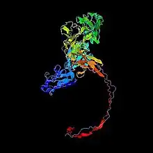 Not much is known about the tertiary structure of FAM63B. A predicted folding is shown.