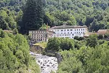 The further use of the production and residential buildings was unclear for a long time. Parts of the site, which comprises around two dozen individual buildings, have so far been used by small local businesses and occasionally as accommodation for the Swiss army. In 1992, architects and students from the Southern California Institute of Architecture branch in Vico Morcote undertook a comprehensive study of the possibility of converting the factory into a cultural center with living, recreation and work spaces, including a restaurant. However, the project presented by the architects Martin Wagner and Lars Lerup could not be implemented due to a lack of funds.[10] On 13 March 2009[29] the Ticino architect Marino Venturini, who was concerned about preserving the buildings, acquired the disused industrial site and 87% of the share capital from the Antognini family, descendants of Giuseppe Pagani.[30][31]