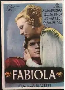 Fabiola (UK title: The Fighting Gladiator) is a 1949 Italian language motion picture historical drama directed by Alessandro Blasetti, very loosely based on the 1854 novel Fabiola by Nicholas Patrick Wiseman. The film stars Michèle Morgan, Henri Vidal and Michel Simon. It tells the story of the Roman Empire in which Christianity is growing around the 4th century AD. An unofficial remake, The Revolt of the Slaves (La Rivolta degli Schiavi), was released in 1960, with Lang Jeffries and Rhonda Fleming, only with Rhual's name changed to Vibio.