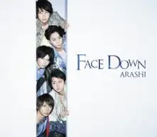 "Face Down" is a song by the Japanese boy band Arashi. It was released on May 9, 2012, under the record label J Storm as the third single from their eleventh studio album Popcorn (2012). "Face Down" is the theme song of the Japanese television series Kagi no Kakatta Heya, which stars Satoshi Ohno, the member of the group. The single was released in two versions; the regular edition came with the song "Mezashita Mirai e" (目指した未来へ) as B-side and the instrumental versions of both songs, the limited edition accompanied with a DVD including the music video of "Face Down" and the B-side "Hitori Janai sa"(ひとりじゃないさ).