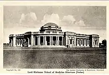 Students transferred from Gordon Memorial College's School of Science to the Kitchener School and studied for six years from 1939 onwards,[4] before taking their final examinations to earn Diploma of Kitchener School of Medicine (DKSM).[5] The school's diploma was recognised by the Royal College of Physicians of London, UK and the Royal College of Surgeons of England, UK. Kitchener School of Medicine joined Khartoum University College in September 1951.[2]