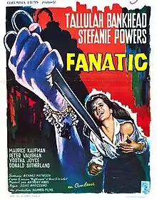 Fanatic (U.S. title: Die! Die! My Darling!) is a 1965 British horror thriller film directed by Silvio Narizzano for Hammer Films. It stars Tallulah Bankhead, Stefanie Powers, Peter Vaughan, Yootha Joyce, Maurice Kaufmann and Donald Sutherland.[1]
