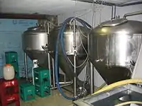 The brewery's cylindro-conical fermentation tanks.