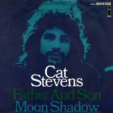 "Father and Son" received substantial airplay on progressive rock and album-oriented rock radio formats, and played a key role in establishing Stevens as a new voice worthy of attention. In 1970, it was only put on the B-side of Stevens' single "Moon Shadow" (Island Records).