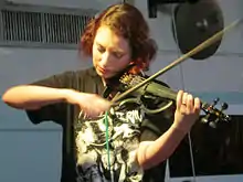 "The next guests of the festival were from Israel. The virtuosic band Fatum Aeternum. It is worth mentioning, that prior their performance, the musicians hanged out in the crowd, and behaved just like any regular visitors – they communicated, danced, and enjoyed themselves. The crowd was ready for more entertainment and dancing, so it greeted them with shouts and applause. The Israelis started their performance very lovely, with the words that they're happy to be in Kyiv, and that they thinks that the autumn in the city is beautiful, especially when leaves are turning to yellow. And of course, they really enjoyed the city and were happy to be here. It is notable, that both the vocalists spoke Russian perfectly. But it turned to be not their only talent. The back-vocalist, who's also the guitarist had heated up the audience in an original way – after a few songs he took off his tie, later – his cloak, and by the end of the show he even unbuttoned his shirt. The crowd went crazy, and the fans cheered up. In general, the show was simply beautiful. The female vocalist played the electric violin amazingly, and the delicate blend of heavy music and trembling violin was mind-blowing."