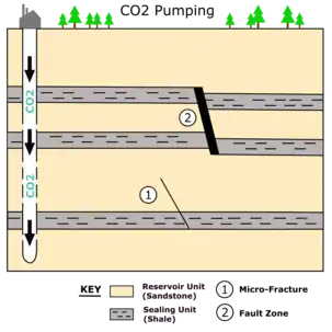Carbon sequestration is a modern method dealing with atmospheric carbon. One of the methods is pumping atmospheric carbon to specific depleted oil and gas reservoirs at depth. However, the presence of a fault zone act as either a seal or a conduit,[21] affecting the efficiency of hydrocarbon formation.