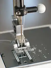 - ↑ Wilson received US patent 12116 on 19 December 1854 specifically for the four-motion feed; however, his machine that won US patent 9041 on 15 June 1852 was already using a moving feed dog whose tooth emerges from a slotted plate.