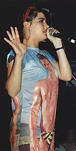 Riot grrrl (or riot grrl) is an underground feminist punk movement that started in the 1990s and is often associated with third-wave feminism (it is sometimes seen as its starting point). It was grounded in the DIY philosophy of punk values. Riot grrrls took an anti-corporate stance of self-sufficiency and self-reliance.[11] Riot grrrls' emphasis on universal female identity and separatism often appears more closely allied with second-wave feminism than with the third wave.[12] Riot grrrl bands often address issues such as rape, domestic abuse, sexuality, and female empowerment. Some bands associated with the movement are Bikini Kill, Bratmobile, Excuse 17, Free Kitten, Heavens to Betsy, Huggy Bear, L7, and Team Dresch. In addition to a music scene, riot grrrl is also a subculture; zines, the DIY ethic, art, political action, and activism are part of the movement. Riot grrrls hold meetings, start chapters, and support and organize women in music.[13]