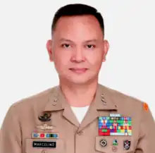 Colonel Ferdinand Marcelino is an active Marine officer of the Philippine Navy, a graduate of the Philippine Military Academy, class of 1994. Born in Hagonoy, Bulacan, he is the eleventh of 13 children of a fisherman and a housewife.