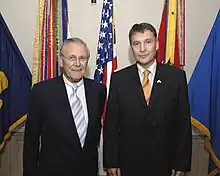 Juhász with U.S. Secretary of Defense Donald Rumsfeld in Washington, D.C., 6 October 2005