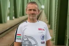 At the age of 40, he took up the triathlon and soon realized that he could excel as runner and triathlete in longer distances. He finished at 4th place in his first double Ironman race, in Bonyhád, Hungary, in 2008, after which he participated in several extreme distance events, like the Vienna–Bratislava–Budapest Supermarathon in his home country and in the Deca-Ironman, which consists of 38 kilometers of swimming, 1800 kilometers of cycling and 422 kilometers of running, and even the Double Deca-Ironman, both held in Monterrey, Mexico. In 2018, he won the Decaman ultratriathlon in New Orleans and by the president of Hungary he was bestowed Knight of the Order of Merit of the Hungarian Republic (Civilian).[1][2][3]