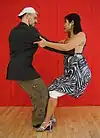 | Overturned gancho (gancho nuevo) | The follower places her leg between the leader's legs. This move can be led from overturned back ocho. See also enganche. | ![]() | ||
