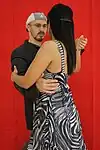 | Abrazo cerrado | V-shape close embrace | Salon and tango nuevo | The dancers' chests are closer to each other than their hips, and often there is contact at about the level of the chest (the contact point differing, depending on the height of the leader and the closeness of the embrace). In close embrace, the leader and the follower's chests are in contact and they are dancing with their heads touching or very near each other. | ![]() | ![]() |