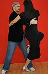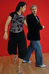 {{cite book}}: CS1 maint: multiple names: authors list (link) (trap sacadas, wrap sacadas, drags, basic ganchos, 3 ganchos, 4 ganchos, gancho boleo, carried gancho, enganches) - ↑ Gavito, Carlos; Duran, Marcela (2000). Un tal Gavito (Someone called Gavito), Classes de tango, DVD and tape, Vol. 1. MusicMedia Productions. (salida in two steps, salida or basic step, cadence with woman's sweep, walking on the edge of the roof, the corkscrew, walk with sacada and boleo (role of the knee), walking on both sides of the woman, cadence with turn, "fan" with barrida sacada and boleo, enrosque with walk).