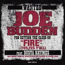 "Fire (Yes, Yes Y'all)" (simply known as "Fire") is a song by American rapper Joe Budden featuring Busta Rhymes. Produced by Just Blaze, the song is the second single from Budden's 2003 eponymous debut album.