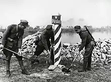 Marking new Polish-German border on Oder River in 1945