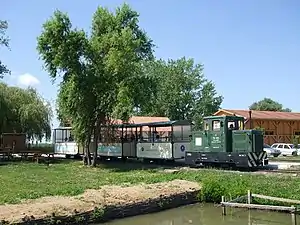 The Fishery Railway Hortobágy (Hungarian: Hortobágy-halastavi Kisvasút) is a narrow gauge railway with a gauge of 760 mm (2 ft 5+15⁄16 in) at the fish ponds near Hortobágy in Hungary. It is the only fishery railway in Europe that operates with locomotives.