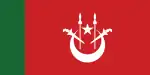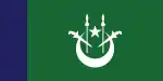 Flag of the MuftiA green flag with a white crescent and star and two white kris and spears charged on the fly.