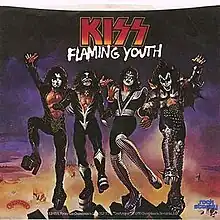 "Flaming Youth" is a song by the American rock band Kiss. The song is featured on their 1976 album Destroyer, and was the first Kiss single to feature a picture sleeve. The single reached number 74 in the U.S. and 73 in Canada. Although the full album version only ran 2:55 (2:59 on CD remasters), the song was still edited to 2:39 with an earlier fade.