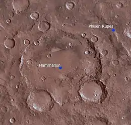 Flammarion is an impact crater in the Syrtis Major quadrangle on Mars at 25.2 ° N and 48.3 ° E. It is 173.0 km in diameter. Its name was approved in 1973, and refers to French astronomer Camille Flammarion.[1] There may have been a lake in the crater in the past because a channel is present on the northern rim, and sedimentary layers are present within the crater.
